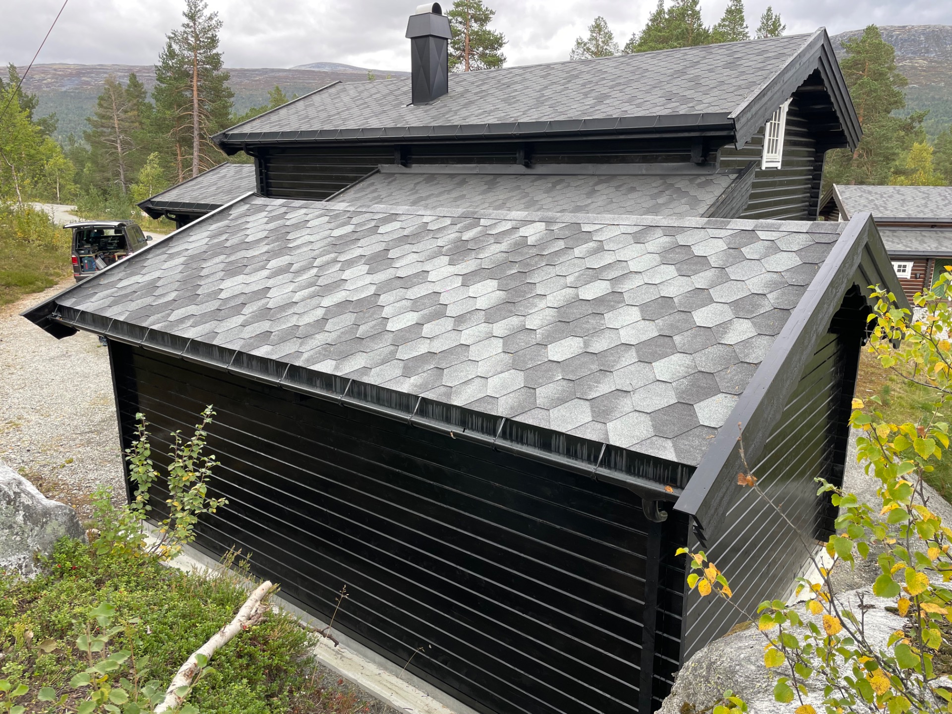 Taket kan bære 120 kg pr kvm. Vi kan forsterke det. Icopal takk plater 7.000kr